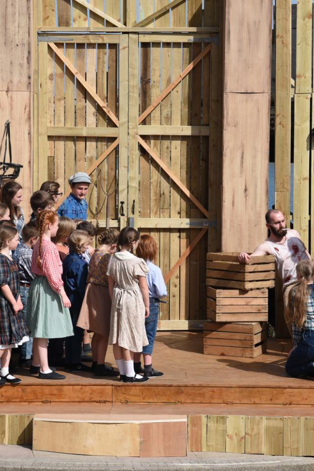 They clearly loved the opportunity to appear at The Minack in four sellout performances in the most perfect outdoor weather, having built an impressively sturdy revolving wood-planked barn of a set, designed by director Ben Blaber, with ‘miraculous’ carpentry by Adam Taylor.