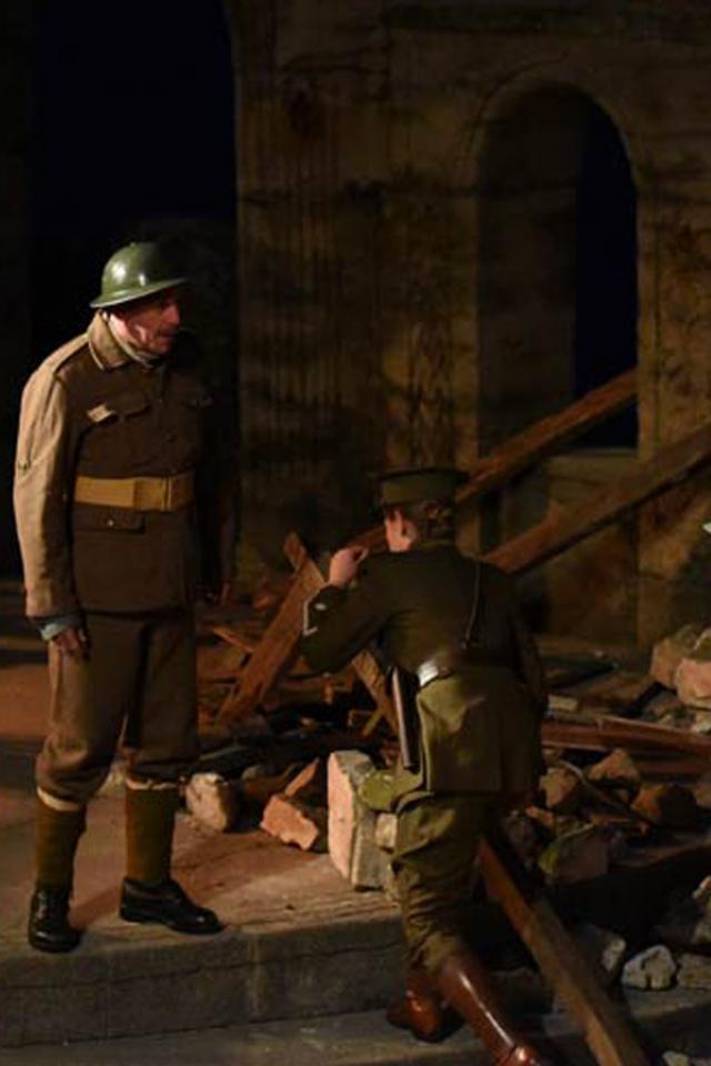 The Duchy-based cube essential theatre, directed by Benjamin Symes, relishes a challenge and recognising the other centenary celebrating the move towards women’s suffrage, has cast the best actors for the roles, irrespective of their sex, and so we see Iga Drzymkowska, as Officer Hibbert, convincingly laying bare her fear of battle.
