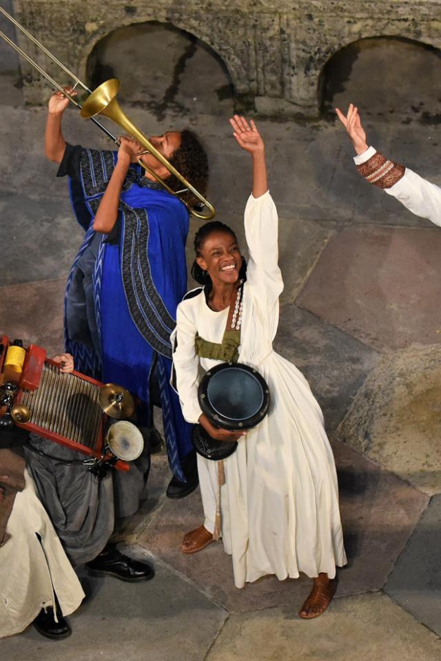 This is a young and gleeful cast of eight that has sprung from across the globe to take part in this Globe On Tour presentation, taking on multiple roles and dialects, and singing and playing an eclectic range of instruments that could have entertained us all night.