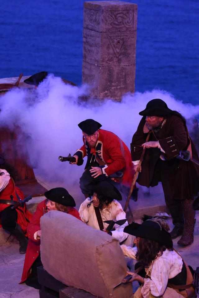Pirates shouting aaaargh, aaaargh, in a very Cornish way, are swarming all over the cliffs at the Minack this week, so all of you young adventurers had better look out.